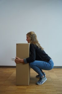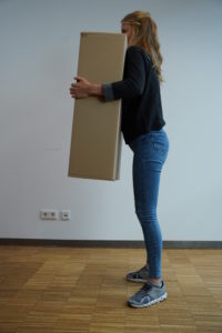 Neben dem sicheren Stand ist die Haltung des Oberkörpers, vor allem des Rückens besonders wichtig, um sich das Heben zu erleichtern und sich vor Schmerzen zu schützen. Egal was du hochheben willst, gehe mit geradem Rücken in die Hocke und so auch wieder in den aufrechten Stand. Denk dabei immer daran, dass dir vor allem deine Beine die Kraft zum Heben geben und nicht dein Rücken.